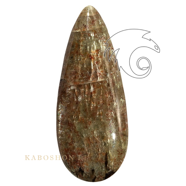 Кабошон из кианита размером 44х18х6 мм. На краю кабошона незначительный скол.