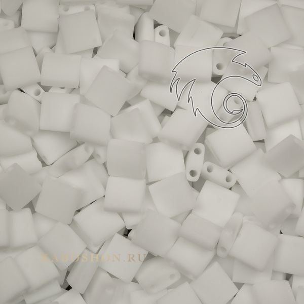 Бисер Miyuki Tila с двумя отверстиями. Цвет: Матовый непрозрачный белый (0402F).