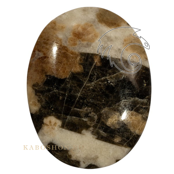 Кабошон из магнезита размером 43х21х6 мм. На задней поверхности кабошона небольшой скол.