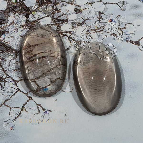 Пара кабошонов из раухтопаза размером 22х13х7 мм.