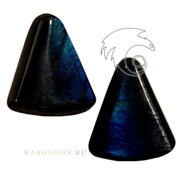 Кабошон из спектролита размером 35х19х8 мм. На подложке из долерита.