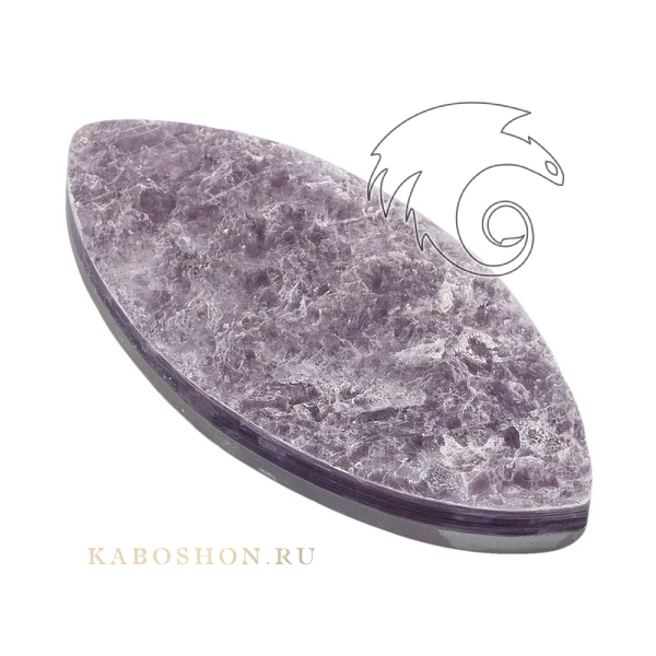 Кабошон из лепидолита размером 55х26х6 мм.
