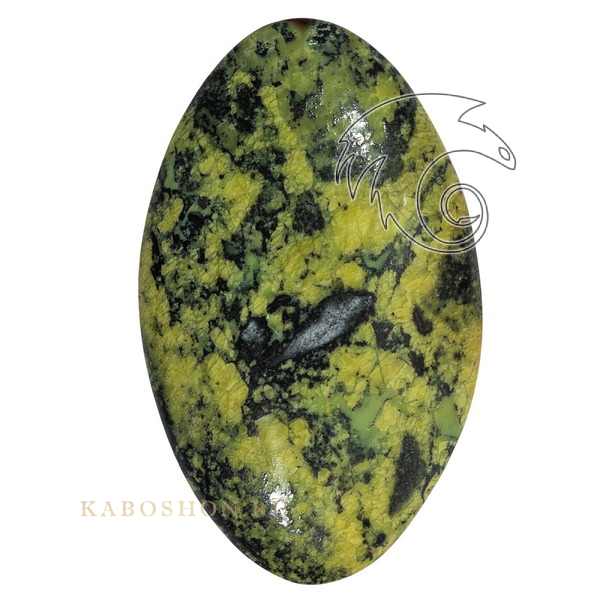 Кабошон из апатита размером 40х21х7 мм.