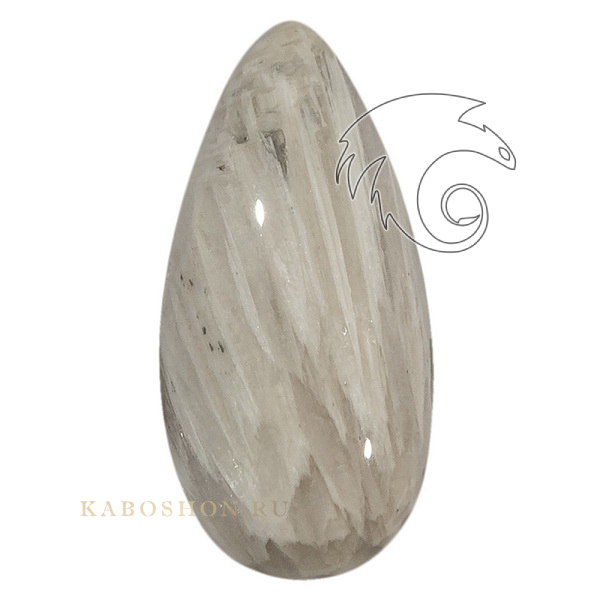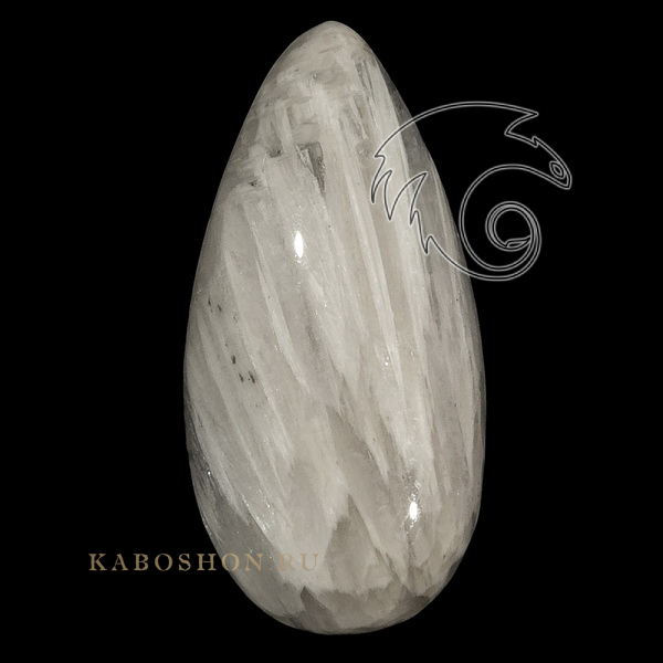Кабошон из сколецита размером 30х15х7 мм.